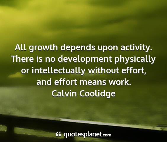 All growth depends upon activity. There is no development physically or intellectually without effort, and effort means work.Calvin Coolidge