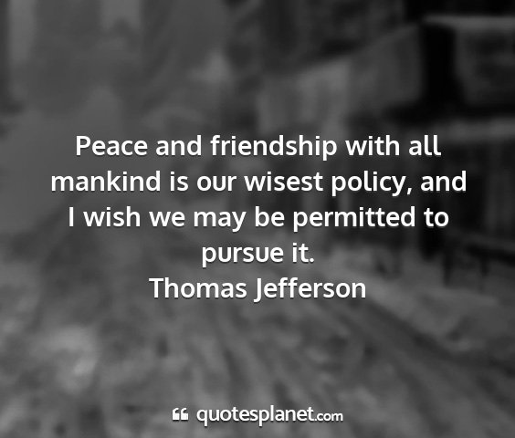Peace and friendship with all mankind is our wisest policy, and I wish we may be permitted to pursue it.Thomas Jefferson