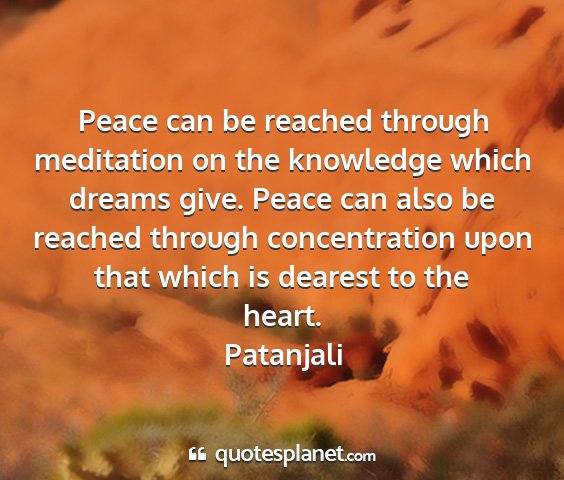Peace can be reached through meditation on the knowledge which dreams give. Peace can also be reached through concentration upon that which is dearest to the heart.Patanjali