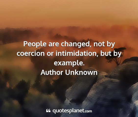 People are changed, not by coercion or intimidation, but by example.