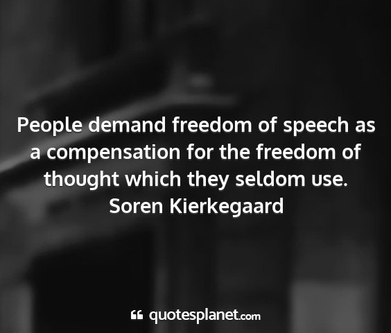 People demand freedom of speech as a compensation for the freedom of thought which they seldom use.Soren Kierkegaard