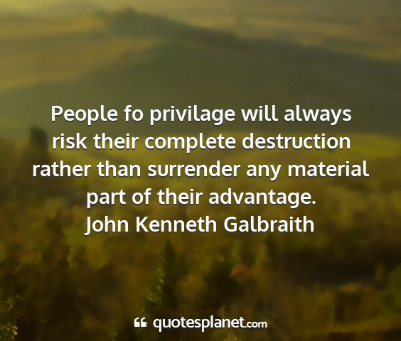 People fo privilage will always risk their complete destruction rather than surrender any material part of their advantage.John Kenneth Galbraith