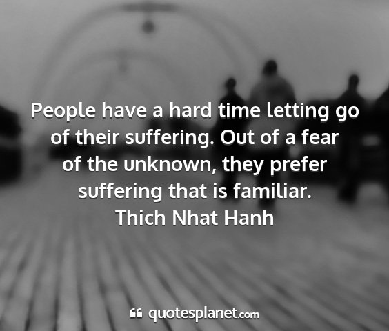 People have a hard time letting go of their suffering. Out of a fear of the unknown, they prefer suffering that is familiar.Thich Nhat Hanh