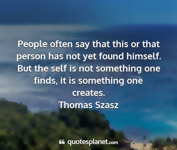 People often say that this or that person has not yet found himself. But the self is not something one finds, it is something one creates.Thomas Szasz
