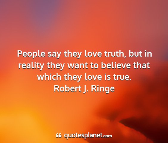 People say they love truth, but in reality they want to believe that which they love is true.Robert J. Ringe