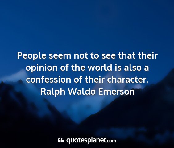 People seem not to see that their opinion of the world is also a confession of their character.Ralph Waldo Emerson