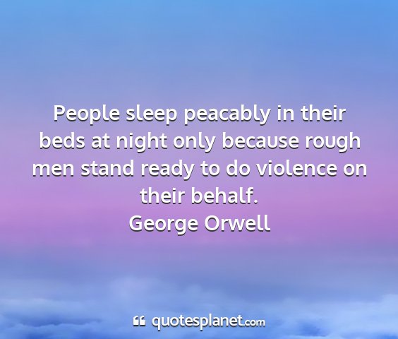 People sleep peacably in their beds at night only because rough men stand ready to do violence on their behalf.George Orwell