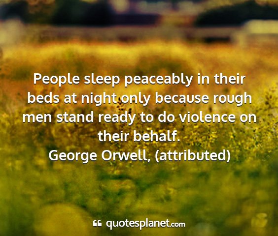 People sleep peaceably in their beds at night only because rough men stand ready to do violence on their behalf.George Orwell, (attributed)