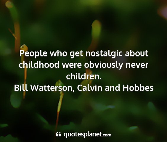 People who get nostalgic about childhood were obviously never children.Bill Watterson, Calvin and Hobbes