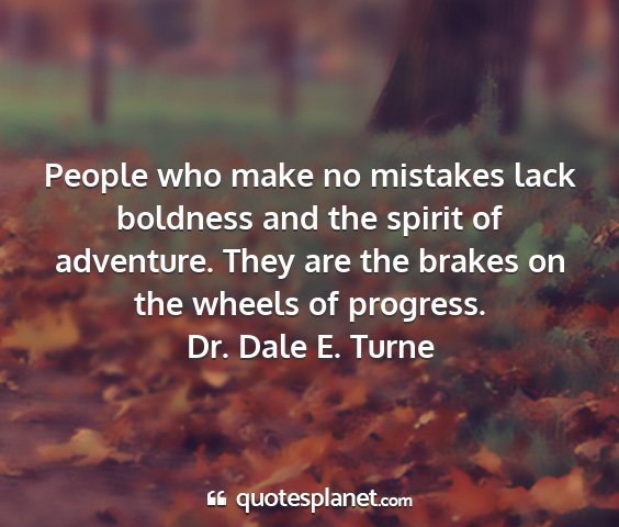 People who make no mistakes lack boldness and the spirit of adventure. They are the brakes on the wheels of progress.Dr. Dale E. Turne
