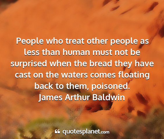 People who treat other people as less than human must not be surprised when the bread they have cast on the waters comes floating back to them, poisoned.James Arthur Baldwin