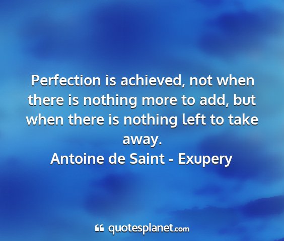 Perfection is achieved, not when there is nothing more to add, but when there is nothing left to take away.Antoine de Saint - Exupery