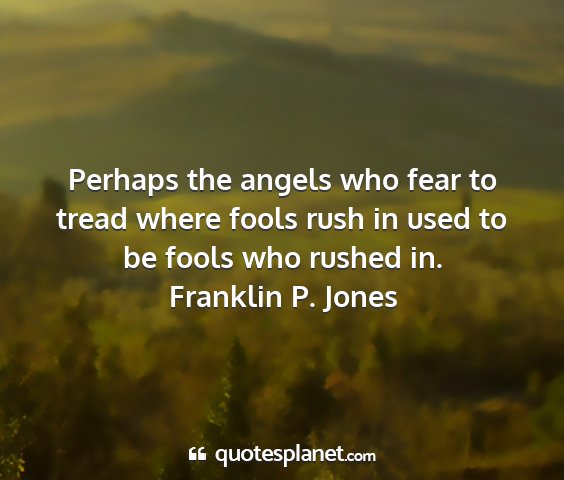 Perhaps the angels who fear to tread where fools rush in used to be fools who rushed in.Franklin P. Jones