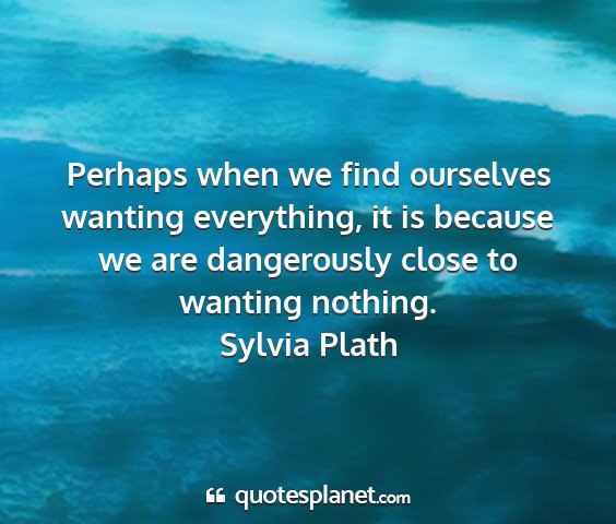 Perhaps when we find ourselves wanting everything, it is because we are dangerously close to wanting nothing.Sylvia Plath