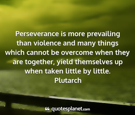 Perseverance is more prevailing than violence and many things which cannot be overcome when they are together, yield themselves up when taken little by little.Plutarch