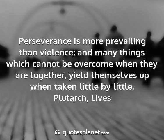 Perseverance is more prevailing than violence; and many things which cannot be overcome when they are together, yield themselves up when taken little by little.Plutarch, Lives
