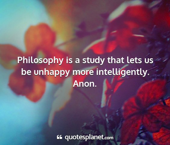 Philosophy is a study that lets us be unhappy more intelligently.