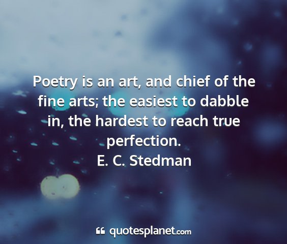 Poetry is an art, and chief of the fine arts; the easiest to dabble in, the hardest to reach true perfection.E. C. Stedman