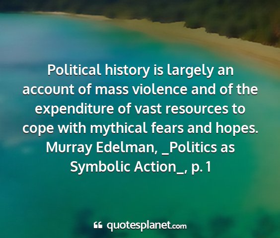 Political history is largely an account of mass violence and of the expenditure of vast resources to cope with mythical fears and hopes.Murray Edelman, _Politics as Symbolic Action_, p. 1