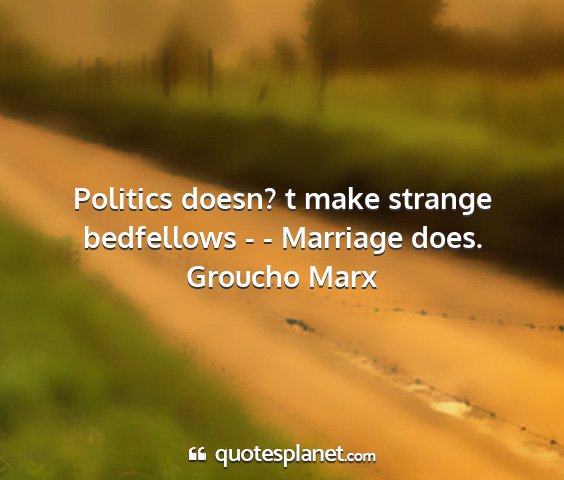 Politics doesn? t make strange bedfellows - - Marriage does.