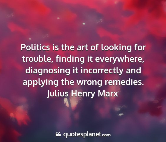 Politics is the art of looking for trouble, finding it everywhere, diagnosing it incorrectly and applying the wrong remedies.Julius Henry Marx
