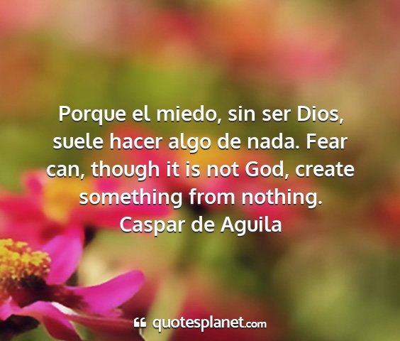 Porque el miedo, sin ser Dios, suele hacer algo de nada. Fear can, though it is not God, create something from nothing.Caspar de Aguila