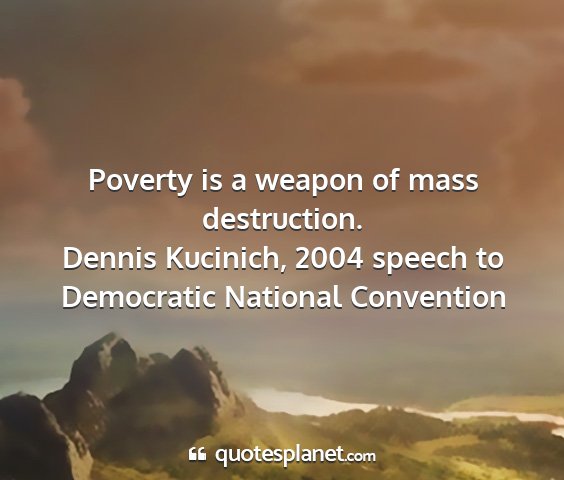 Poverty is a weapon of mass destruction.Dennis Kucinich, 2004 speech to Democratic National Convention