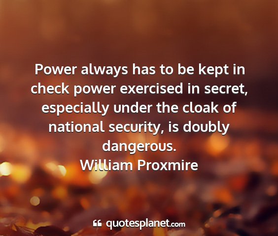 Power always has to be kept in check power exercised in secret, especially under the cloak of national security, is doubly dangerous.William Proxmire