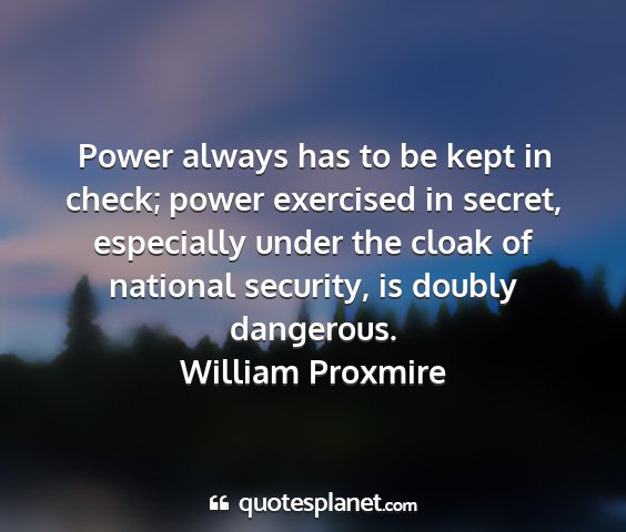 Power always has to be kept in check; power exercised in secret, especially under the cloak of national security, is doubly dangerous.William Proxmire