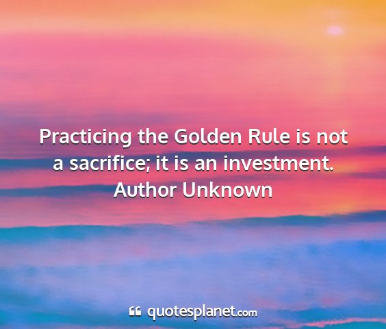 Practicing the Golden Rule is not a sacrifice; it is an investment.