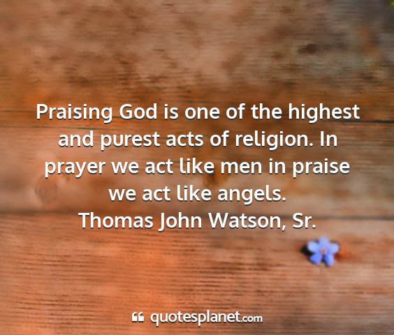 Praising God is one of the highest and purest acts of religion. In prayer we act like men in praise we act like angels.Thomas John Watson, Sr.