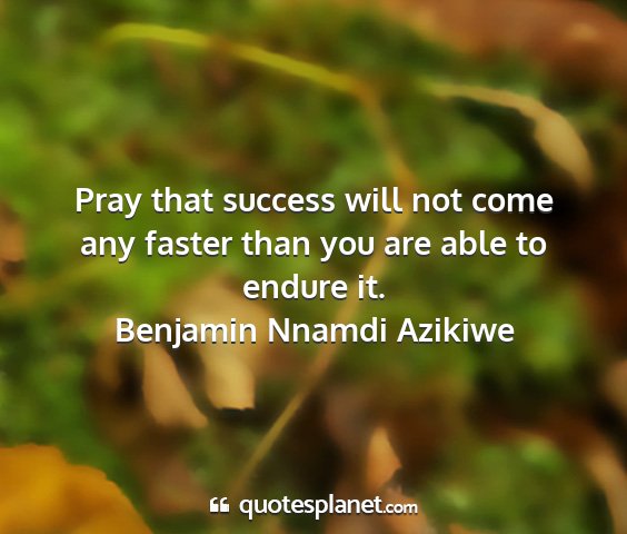 Pray that success will not come any faster than you are able to endure it.