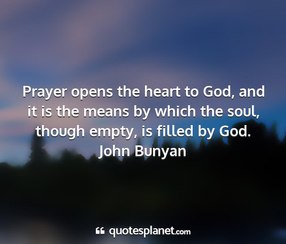 Prayer opens the heart to God, and it is the means by which the soul, though empty, is filled by God.John Bunyan
