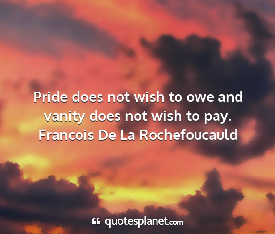Pride does not wish to owe and vanity does not wish to pay.