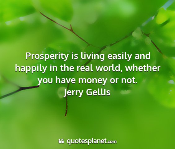 Prosperity is living easily and happily in the real world, whether you have money or not.Jerry Gellis