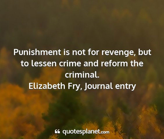 Punishment is not for revenge, but to lessen crime and reform the criminal.Elizabeth Fry, Journal entry