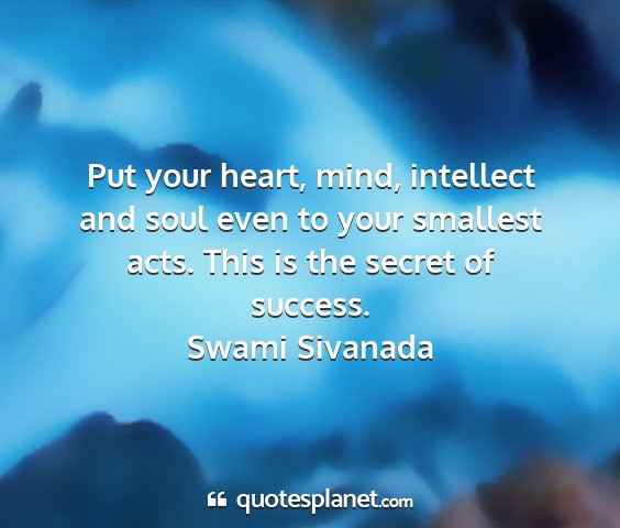 Put your heart, mind, intellect and soul even to your smallest acts. This is the secret of success.Swami Sivanada