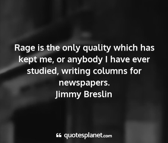 Rage is the only quality which has kept me, or anybody I have ever studied, writing columns for newspapers.Jimmy Breslin