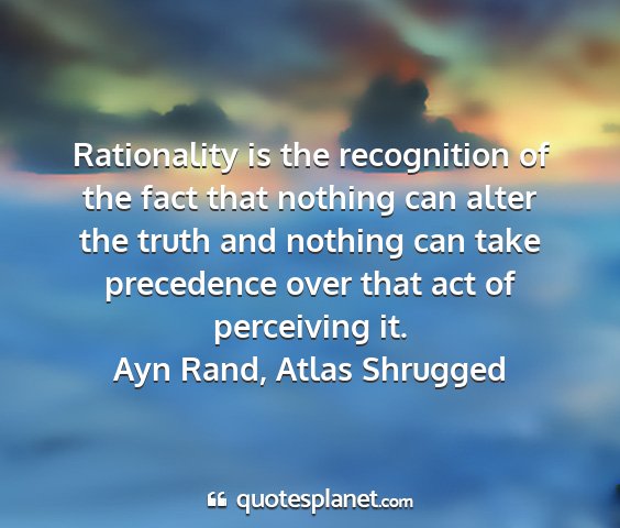 Rationality is the recognition of the fact that nothing can alter the truth and nothing can take precedence over that act of perceiving it.Ayn Rand, Atlas Shrugged
