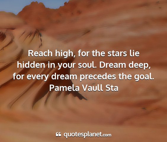 Reach high, for the stars lie hidden in your soul. Dream deep, for every dream precedes the goal.Pamela Vaull Sta