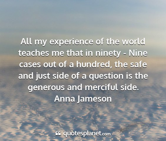 All my experience of the world teaches me that in ninety - Nine cases out of a hundred, the safe and just side of a question is the generous and merciful side.Anna Jameson