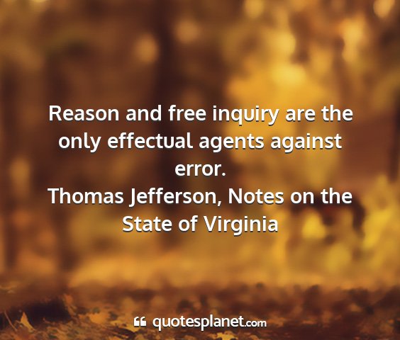 Reason and free inquiry are the only effectual agents against error.Thomas Jefferson, Notes on the State of Virginia
