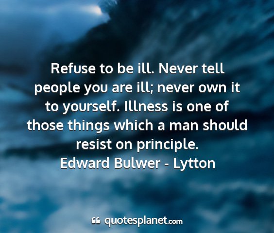 Refuse to be ill. Never tell people you are ill; never own it to yourself. Illness is one of those things which a man should resist on principle.Edward Bulwer - Lytton