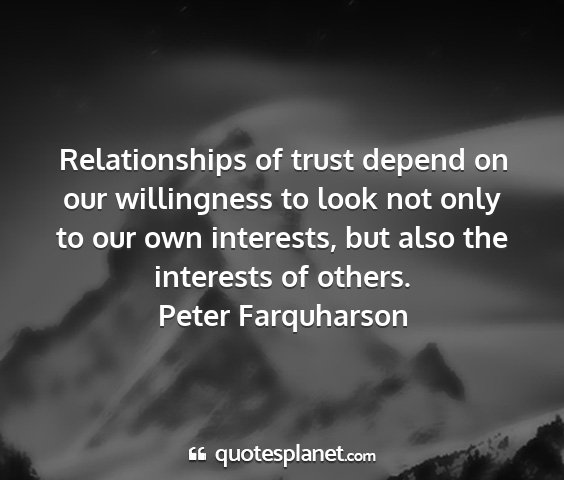 Relationships of trust depend on our willingness to look not only to our own interests, but also the interests of others.Peter Farquharson