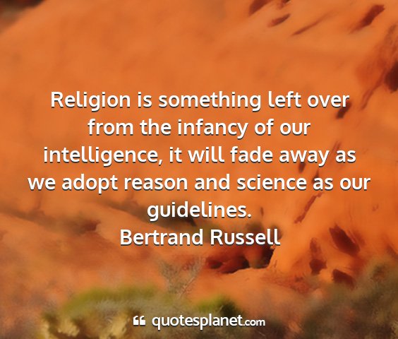 Religion is something left over from the infancy of our intelligence, it will fade away as we adopt reason and science as our guidelines.Bertrand Russell