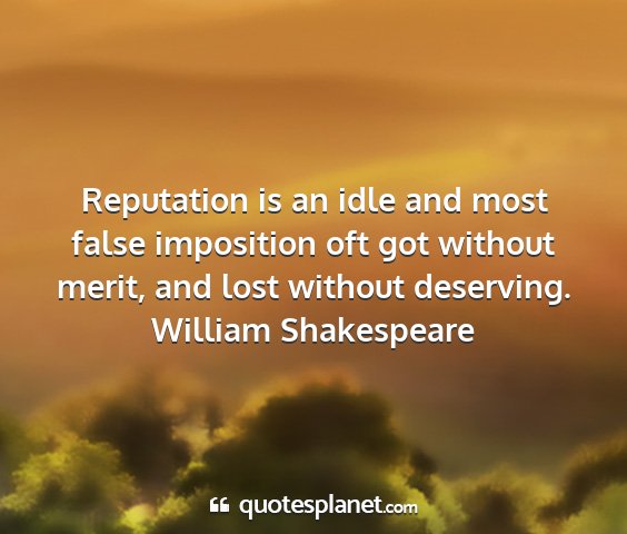 Reputation is an idle and most false imposition oft got without merit, and lost without deserving.William Shakespeare