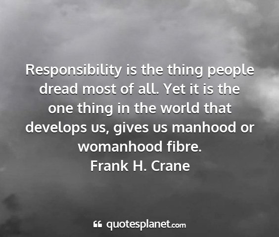 Responsibility is the thing people dread most of all. Yet it is the one thing in the world that develops us, gives us manhood or womanhood fibre.Frank H. Crane