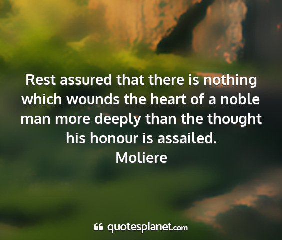 Rest assured that there is nothing which wounds the heart of a noble man more deeply than the thought his honour is assailed.Moliere