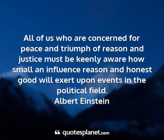 All of us who are concerned for peace and triumph of reason and justice must be keenly aware how small an influence reason and honest good will exert upon events in the political field.Albert Einstein