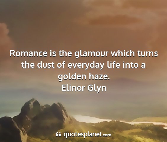 Romance is the glamour which turns the dust of everyday life into a golden haze.